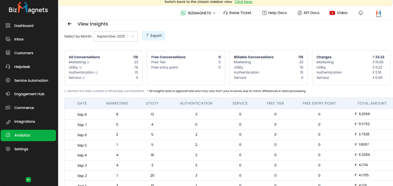 You can access valuable metrics that offer insights into user engagement, message delivery, and response patterns from BizMagnets.