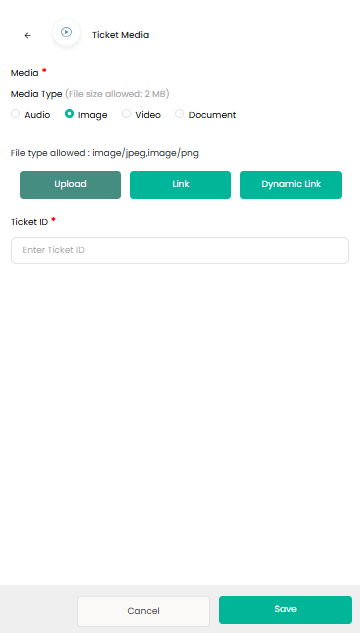3. Enter the **Ticket ID** which uniquely identifies each support ticket, linking the media card to a specific customer query. It enables efficient tracking and management of interactions within the support system.