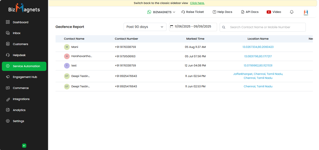 Overall, the **Geofence Report** helps businesses track and optimize the performance of field agents, ensuring timely service delivery and adherence to the planned routes.