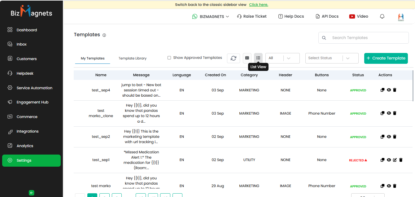 # BizMagnets Template Messages