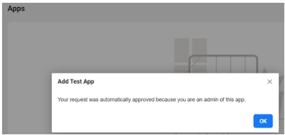 14. Since you are the admin of the app, your request will be automatically approved. Click 'OK'. Then, refresh your page; the newly added app should now appear.
